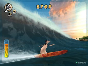 Una excusa perfecta para un videojuego como este, en el que se combinan acrobacias, velocidad y, como no, surf y pingüinos. En Locos por el Surf tendrás que escoger a uno de los personajes de la película, que tienen diferentes características divididas en velocidad, acrobacia o el momento "guai". Este momento es como el tiempo bala de Matrix, y básicamente, podrás hacer más acrobacias en menos tiempo.
